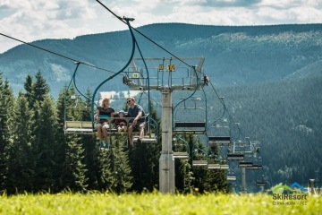 Z herní krajiny Pecka můžete jet zpět lanovou dráhou, nebo si můžete nahoře zapůjčit koloběžky a sjet zpět do Velké Úpy.
