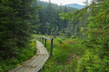 Od hotelu Horizont se vydáte směrem do Obřího dolu a hned za parkovištěm U kapličky a přehradou v Bukovém údolí odbočíme vlevo po červené turistické značce na Milíře a dál do Modrého dolu.