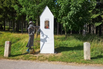 Pokračujte dále podél značení nad Velkou Plání a pak dále po asfaltové cestě směrem na Výrovku (směr do kopce), dokud nenarazíte na další značení.