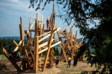 In der Spiellandschaft finden Sie etliche überlebensgroße Skulpturen – die Kinder können im Hirschgeweih reiten, einem Luchs den Kopf