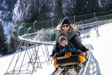 Die Doppelsitzerschlitten fahren mit bis zu 40 km/h teilweise 8 müber der Erde. Aber Sie brauchen keine Angst zu haben: der Schlitten sitzt sicher in der Bahn, so dass keine Gefahr droht, der Schlitten oder Sie könnten die Bahn unfreiwillig verlassen.