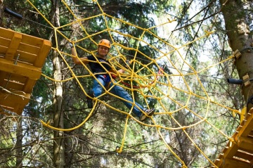 Procházet se nad zemí mezi stromy, přejíždět peckou přehradu tam a zpátky na laně, užívat si zábavu a nemyslet na práci.